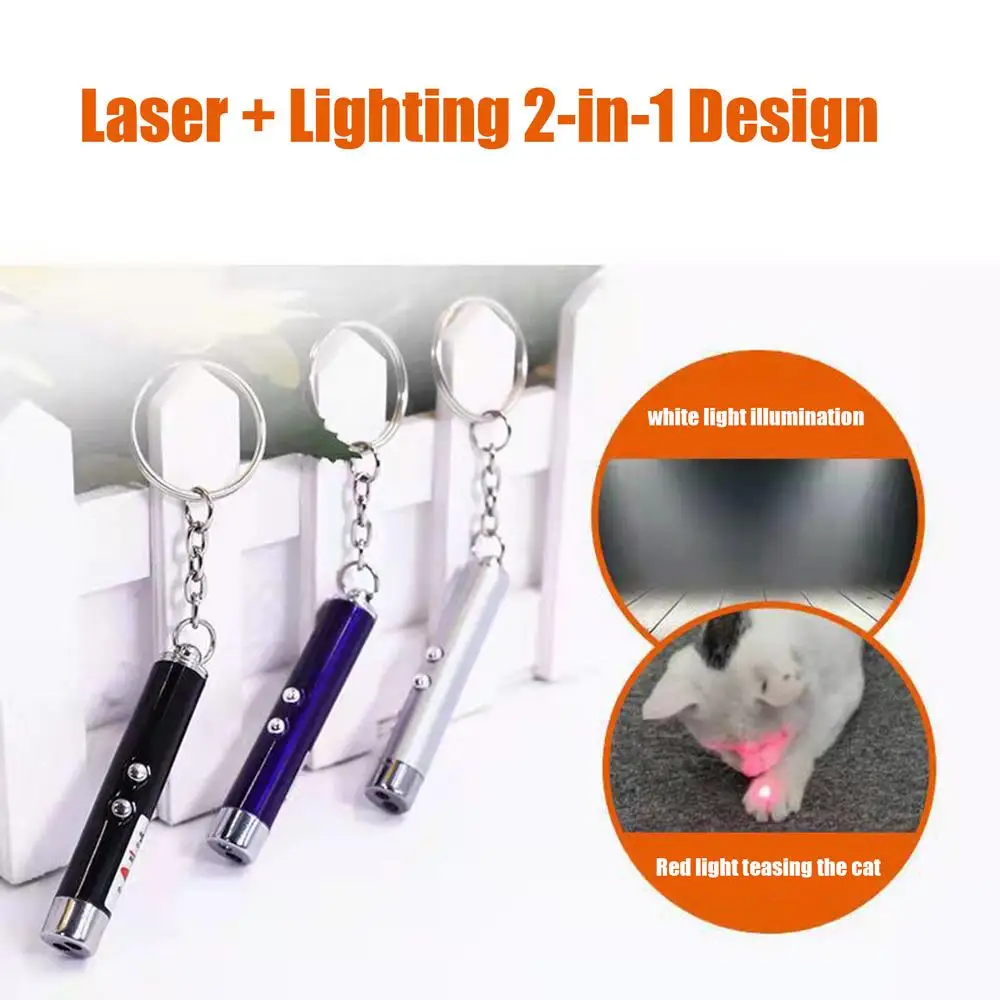 3.Portable Design: This cat laser pointer toy lets you hang it on your keys, bag, or belt, so you can entertain your pet anytime, anywhere with a simple press of a button. The portable design comes with a key ring, making it very easy to carry and store.